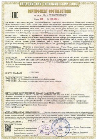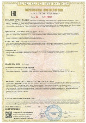 Сертификат соответствия № ТС RU C-RU.МЛ07.В.01083 Серия RU №0330121